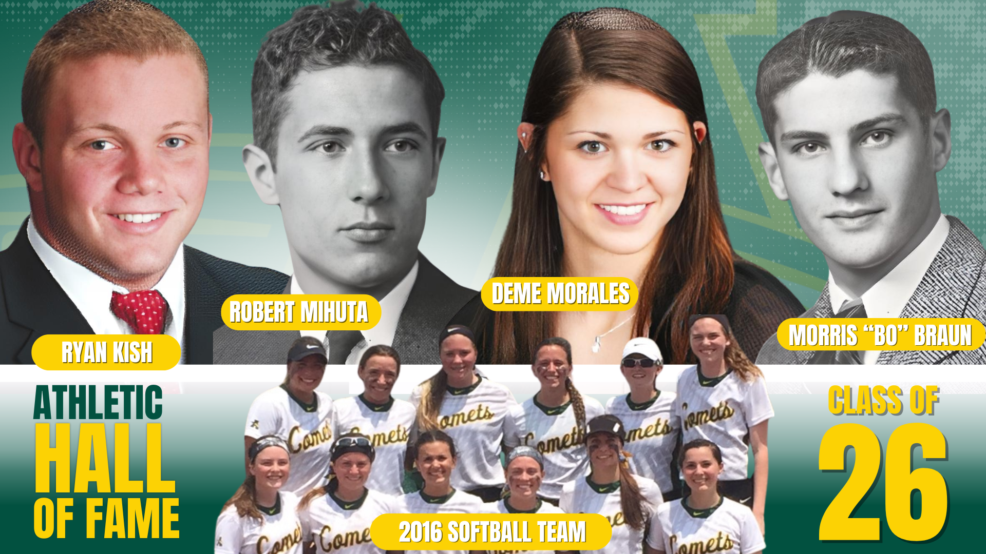 We congratulate all members of the Athletic Hall of Fame Class of 2026 on this well-deserved honor and thank them for the legacy they have built for future generations of Comets. Once a Comet, always a Comet. |