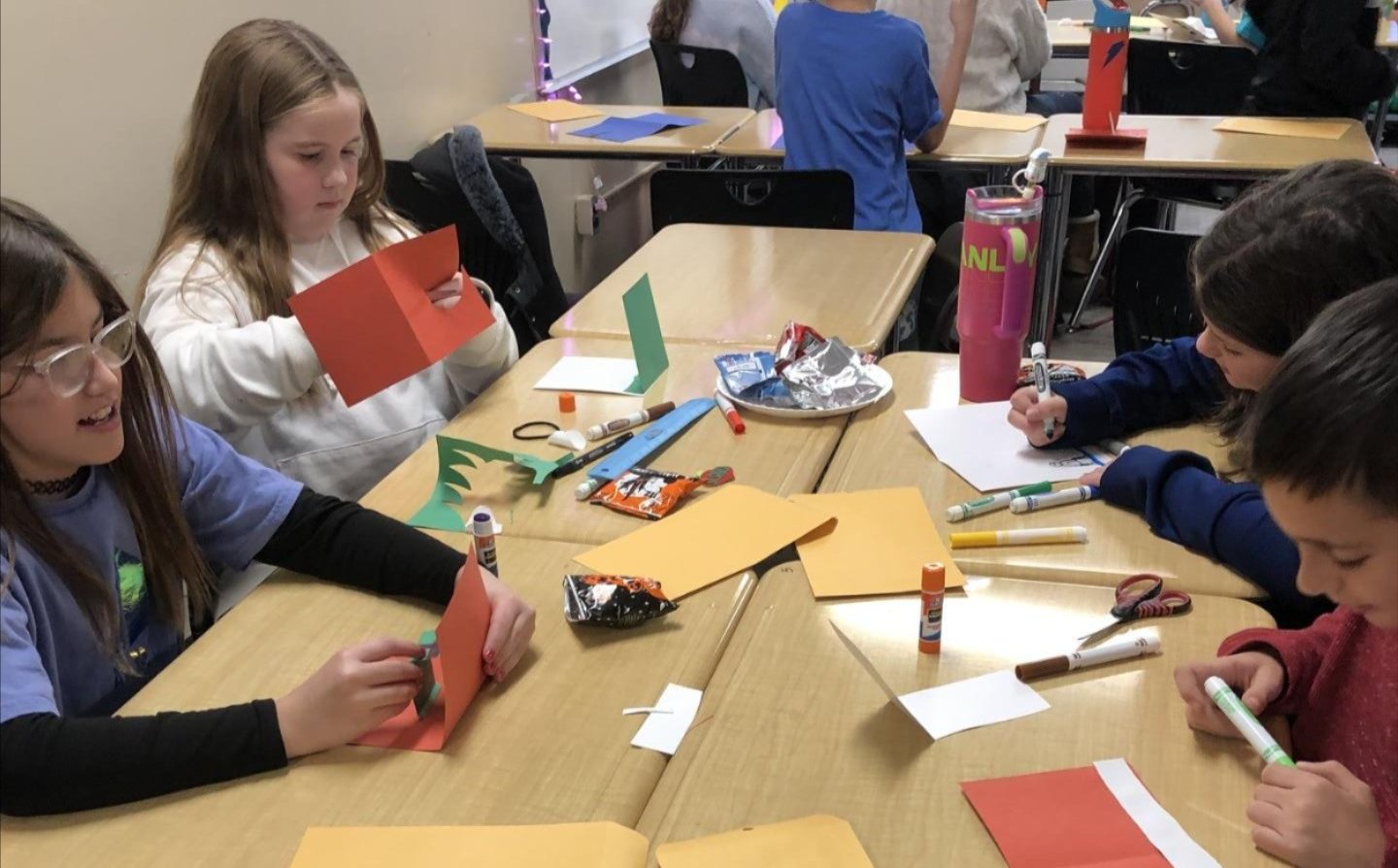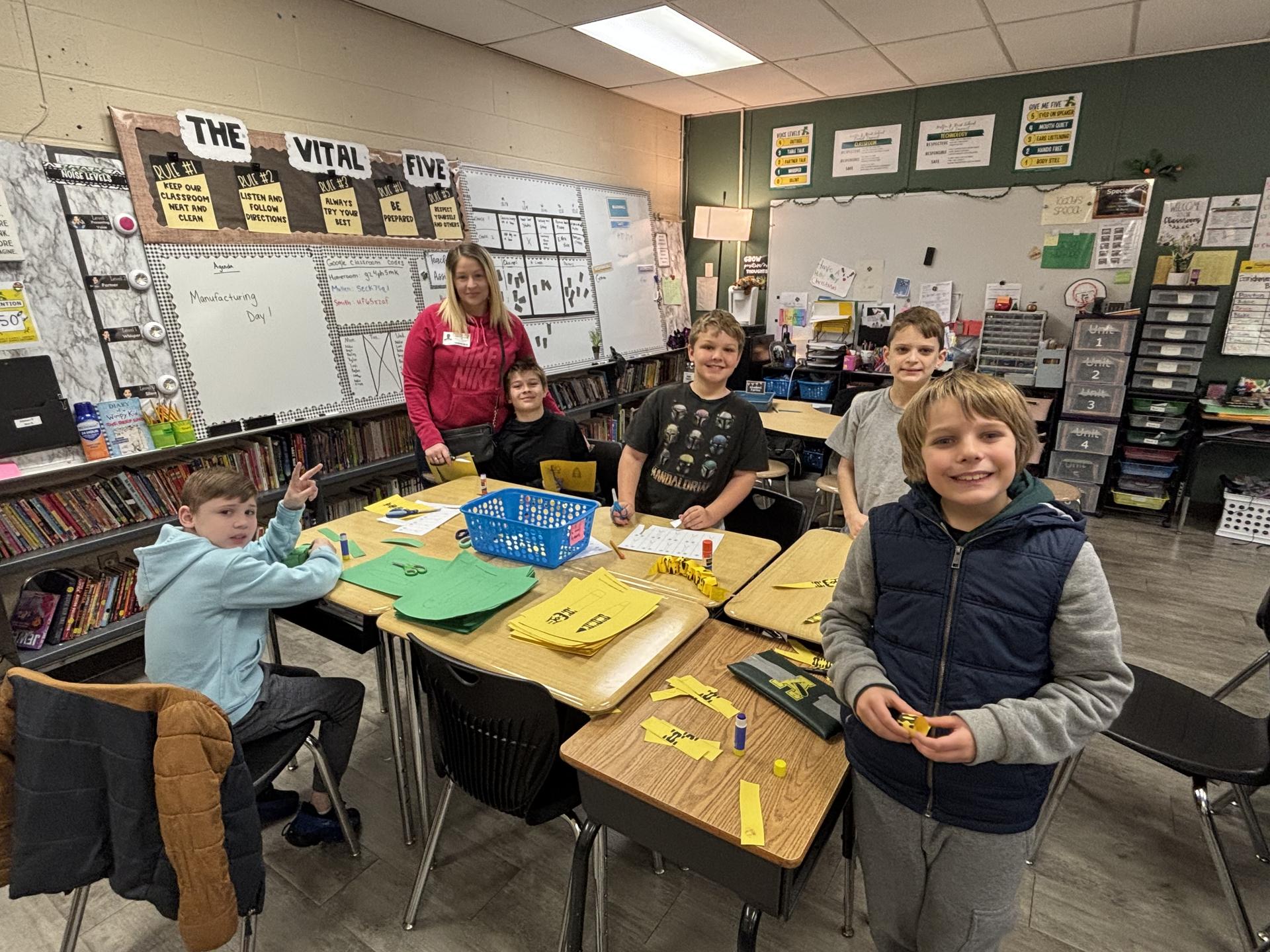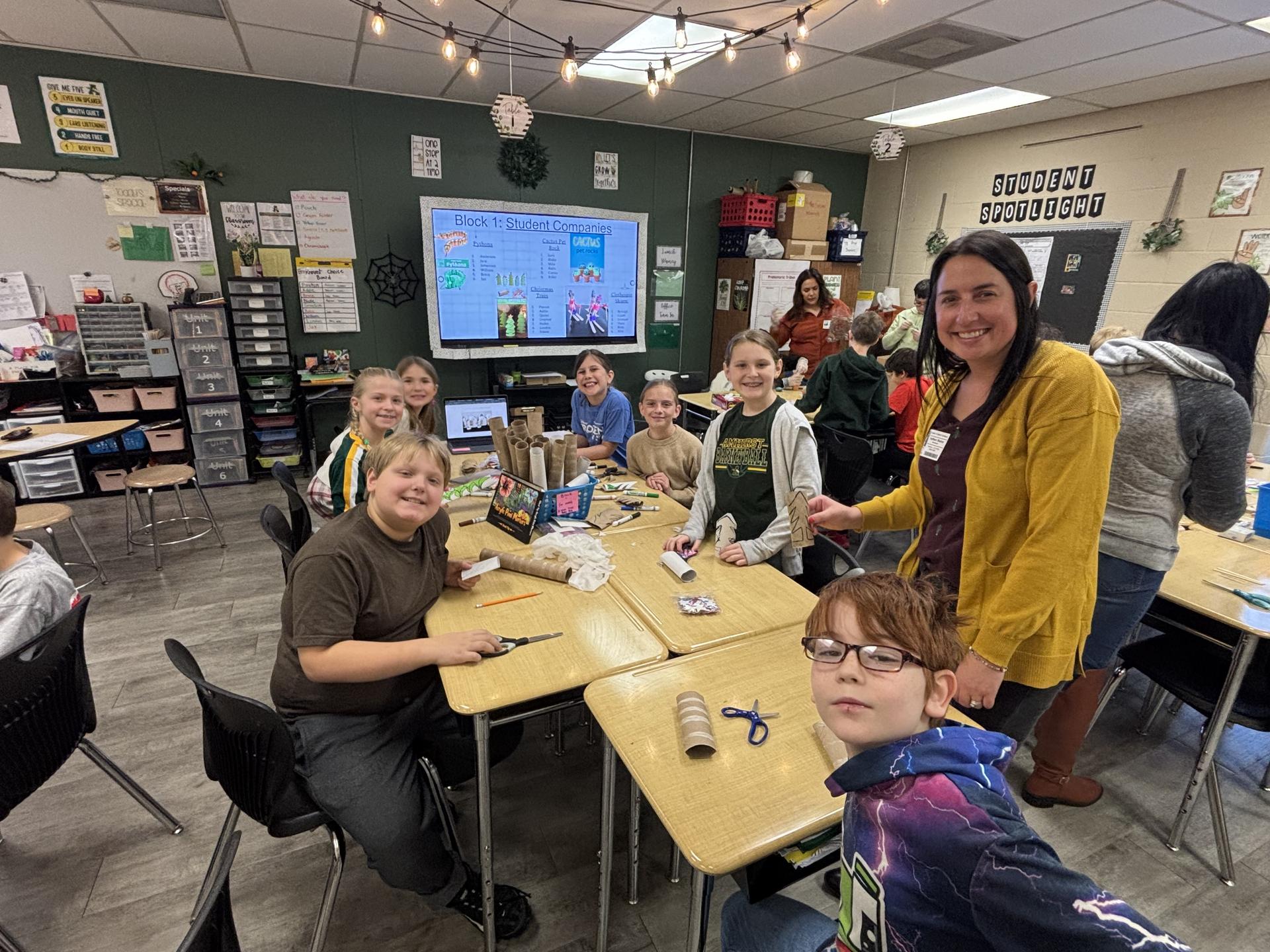 Fourth Grade students in Mrs. Stellwagen's class have been working on an entrepreneurship unit for the last few weeks. Students were placed into student companies based on products they were interested in manufacturing. Within these “companies” they collaborated to complete business plans, learn about supply and demand, marketing and advertising strategies, as well as financial responsibility through budgets. Students manufactured their products with the help of parent “supervisors” and sold their products today with play money to each other with a personal budget. Thank you to all of our parent volunteers who joined us!