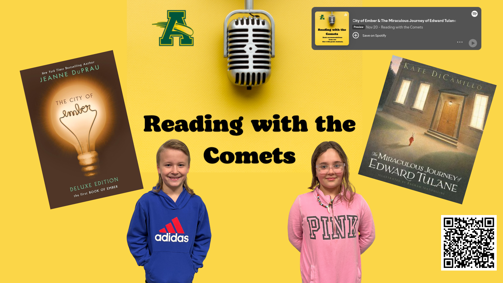 Students can apply to be on the podcast using a Google Form, and those selected record an episode with Mrs. Schwartz. Episodes are emailed to students and are also available on Spotify. Some of the authors featured have even reached out after listening to the podcast! Reading with the Comets is a fun way to discover new books and gives students a real-world audience to share their excitement.