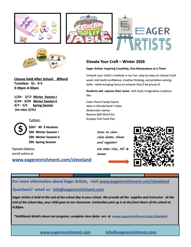 As we conclude the second grading period and first semester, I would also like to extend my sincere thanks to our Nord families. Your continued support and partnership with our dedicated staff and students have played an important role in making this another successful year at Walter G. Nord School. It is hard to believe we are already halfway through the school year! Take care,