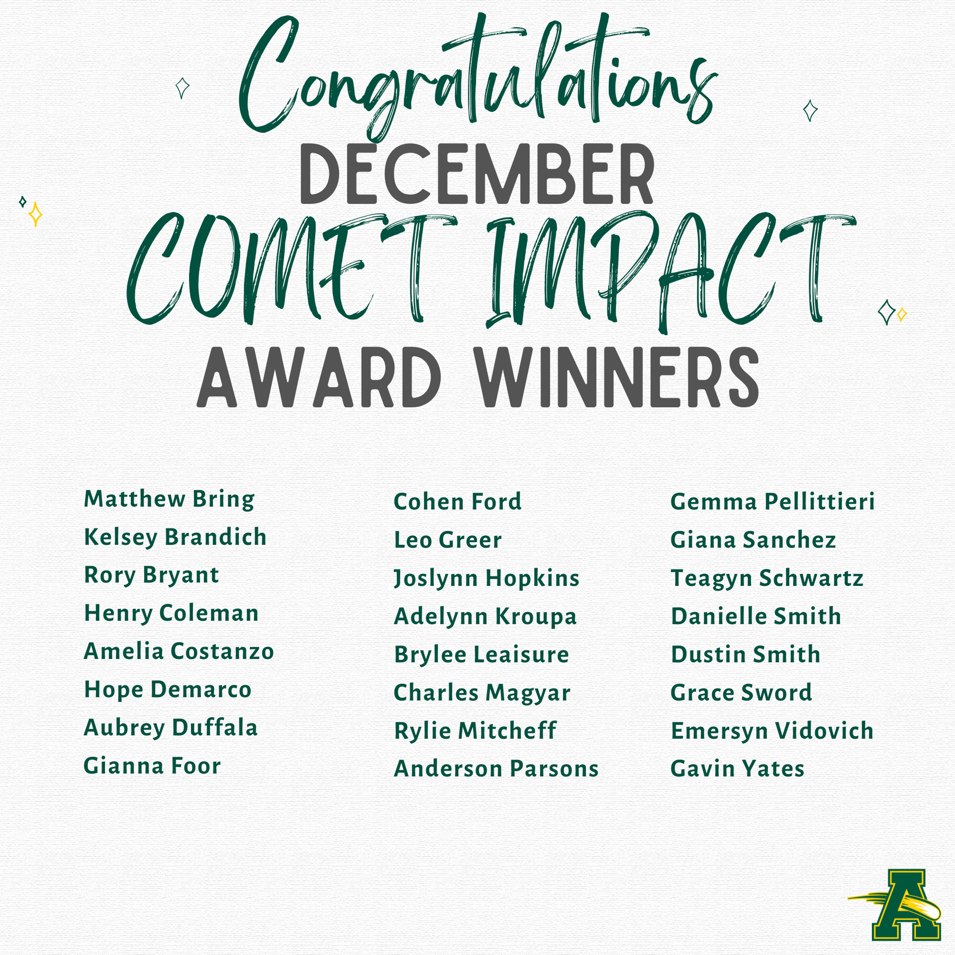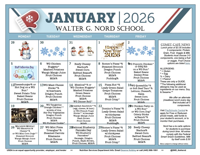 Congratulations to our Comet Impact students of the month for December who are highlighted below! These students were recognized by our staff for going above and beyond of meeting our Comet Impact expectations of respectful, responsible, and safe. Thank you for being an important part of our Nord family. We look forward to a great start to 2026! Take care and stay warm, Nick Toney Principal, Walter G. Nord School |