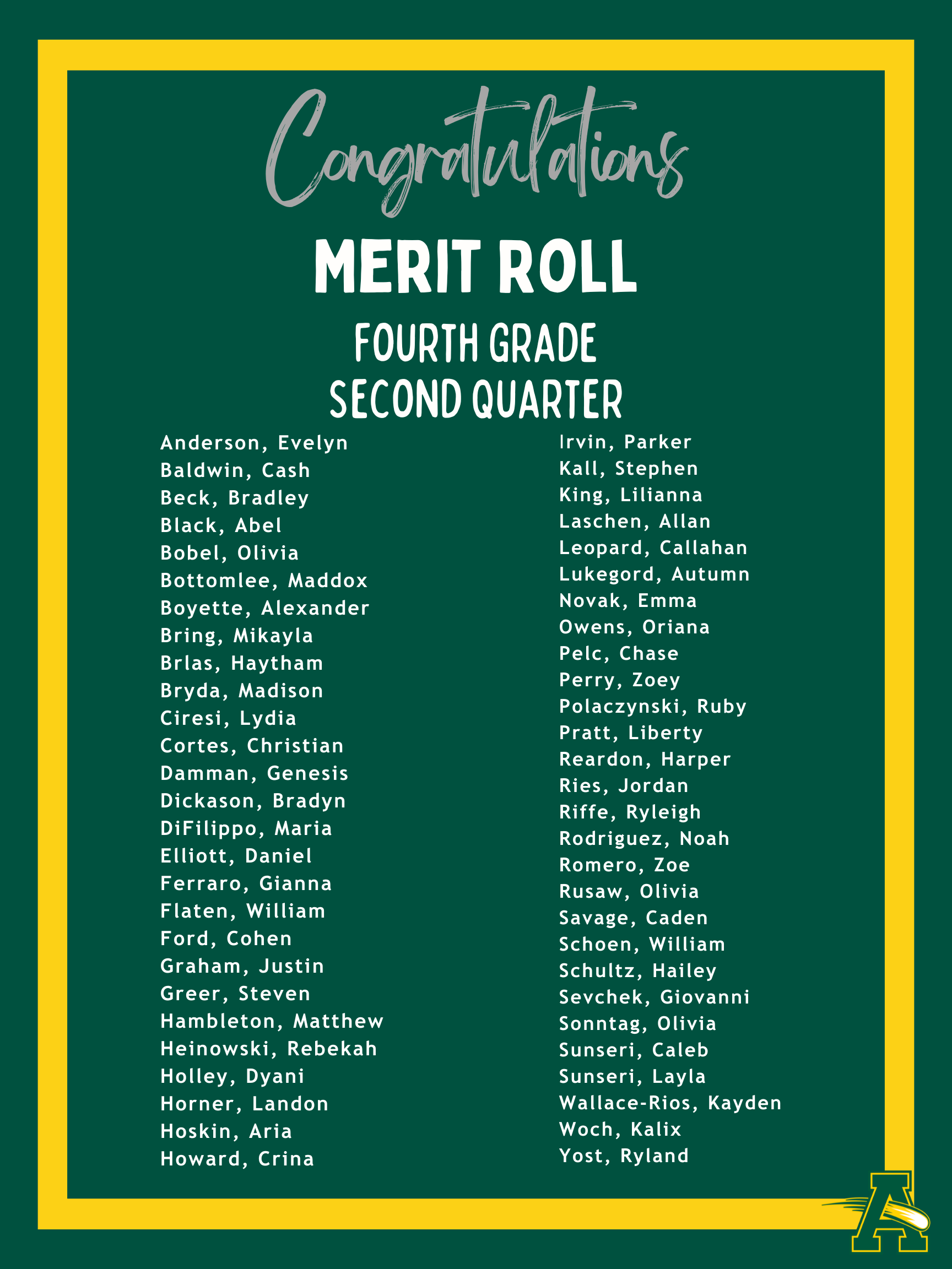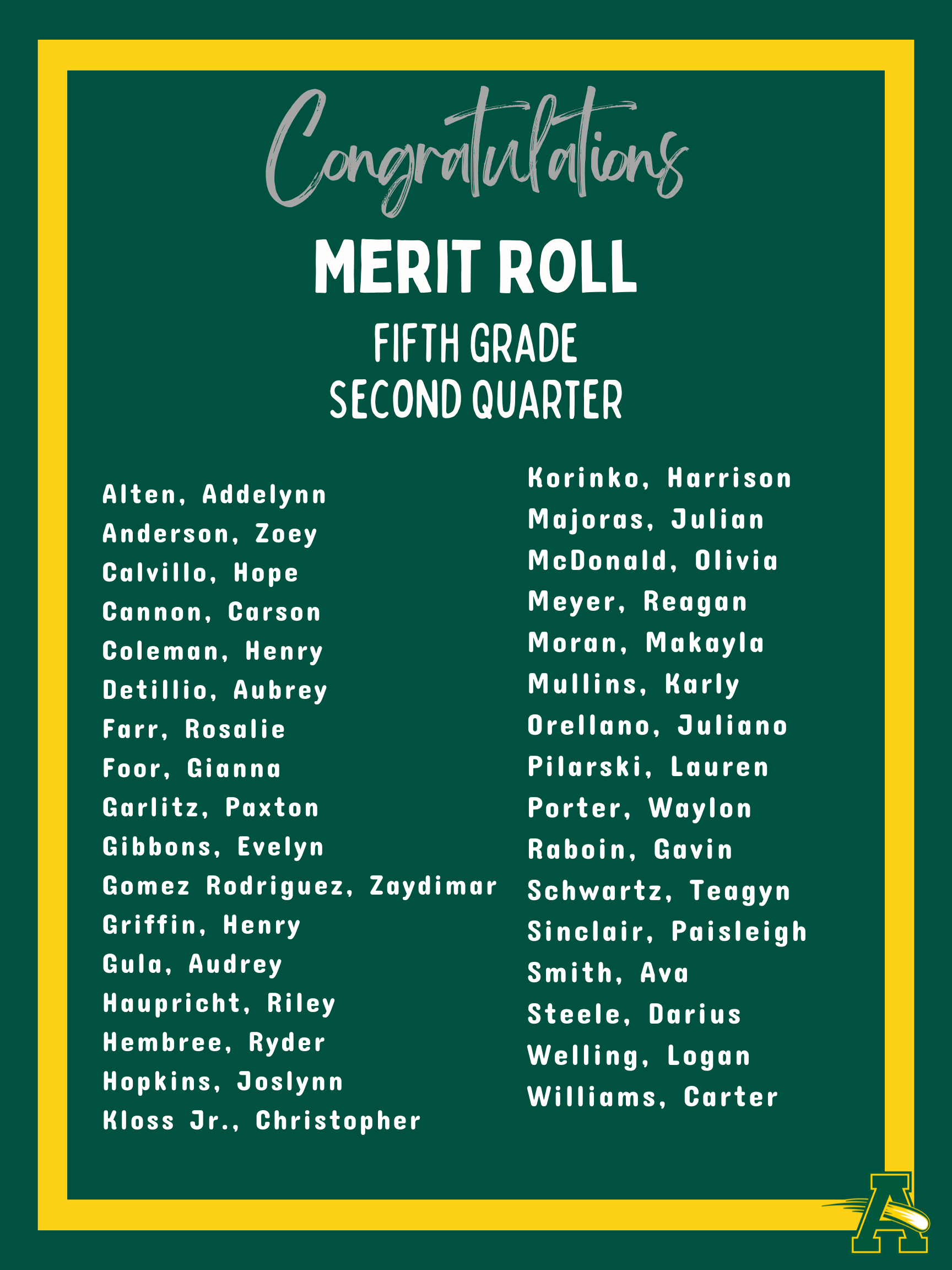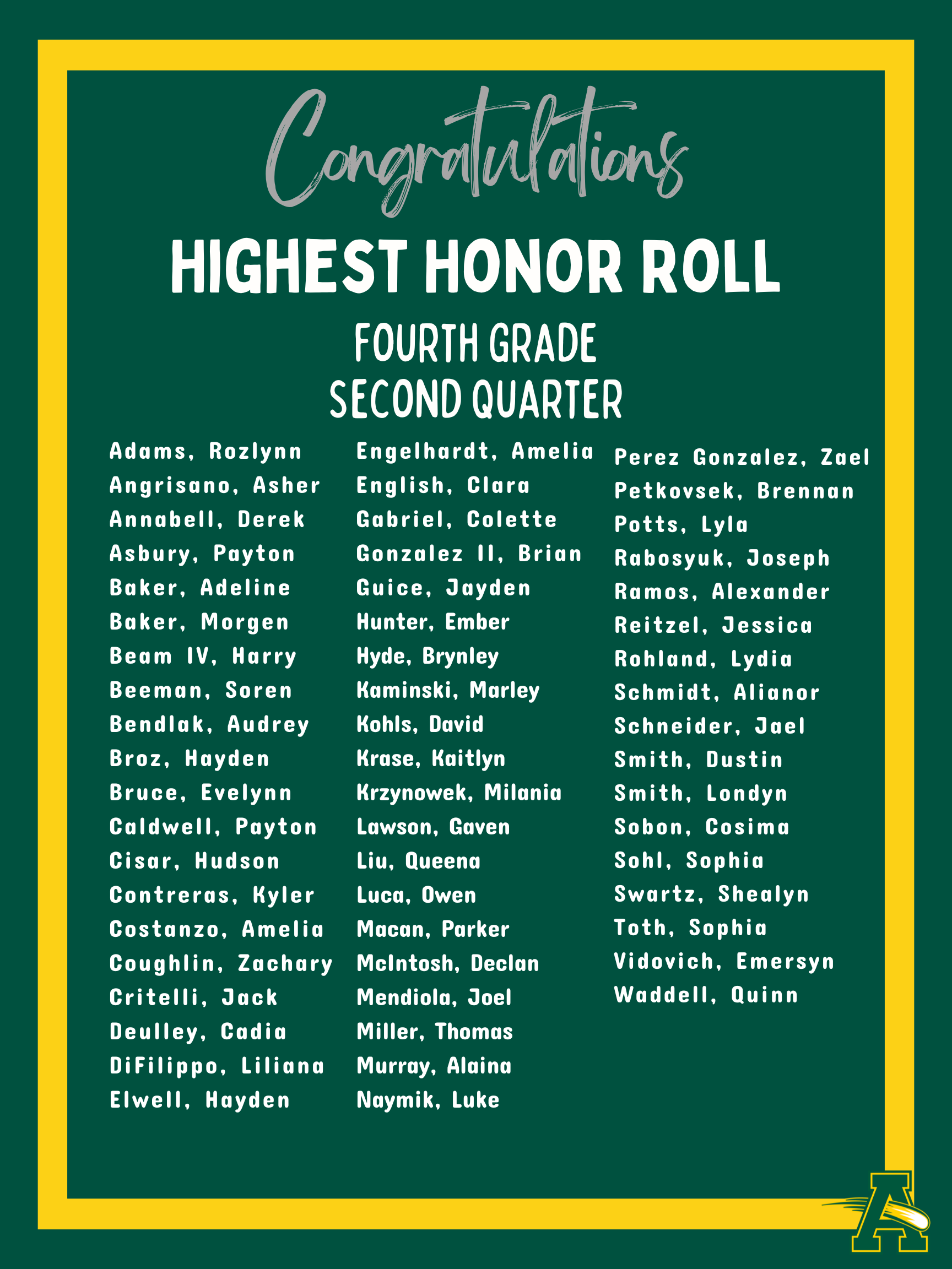 Thank you for your continued support as we navigate winter weather conditions. It was wonderful to have students back in the building yesterday, and we look forward to settling back into our routine in the weeks ahead! Congratulations to the students recognized below for Second Quarter Academic Achievement! Your hard work and leadership help make Nord a wonderful place to learn and grow.