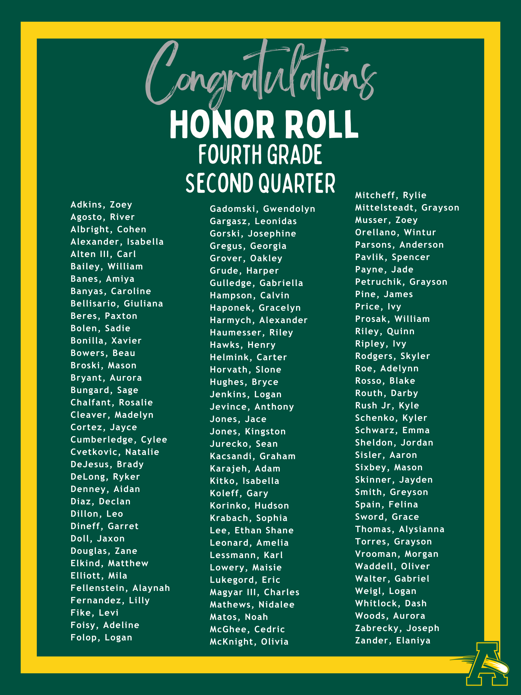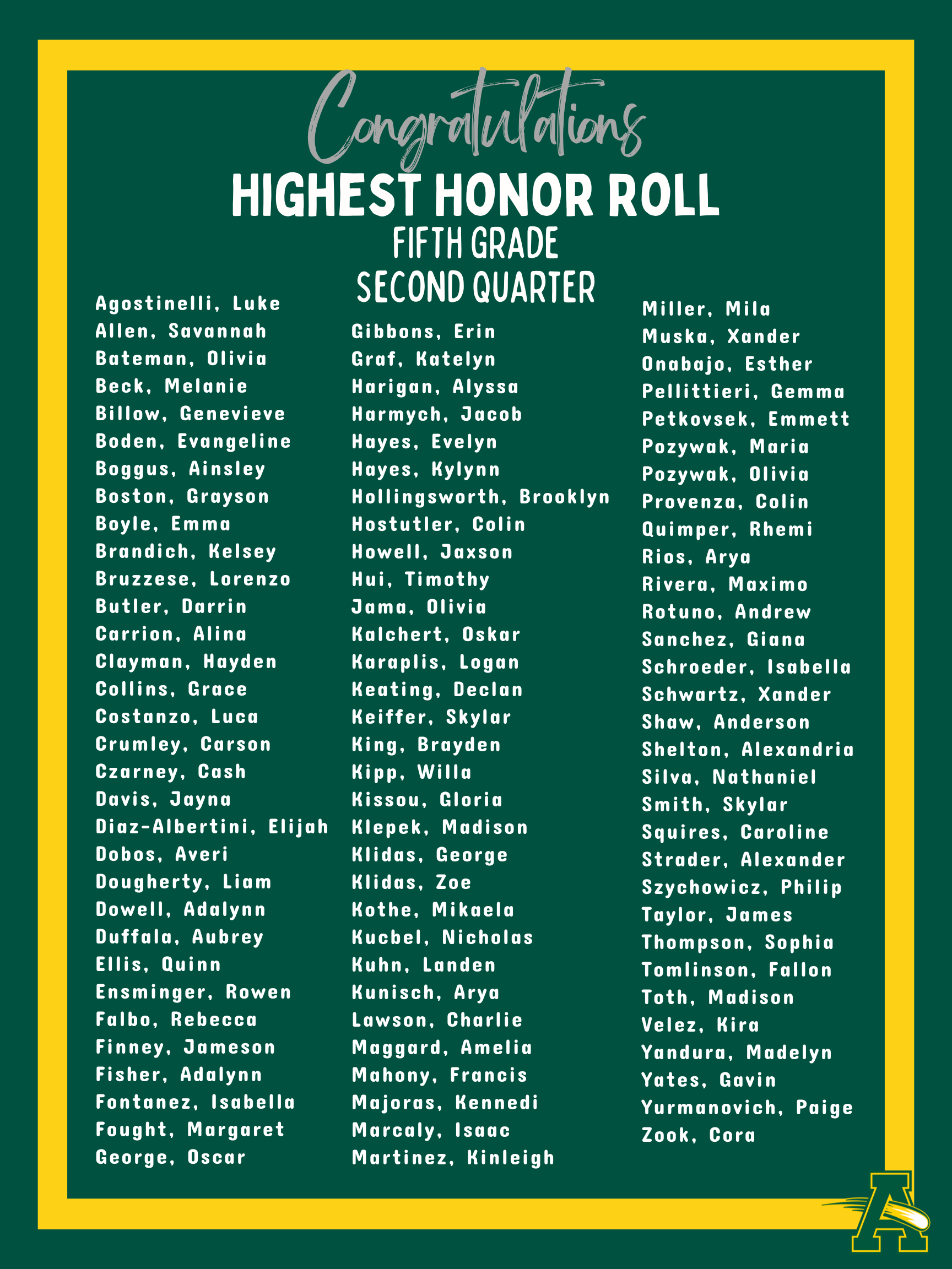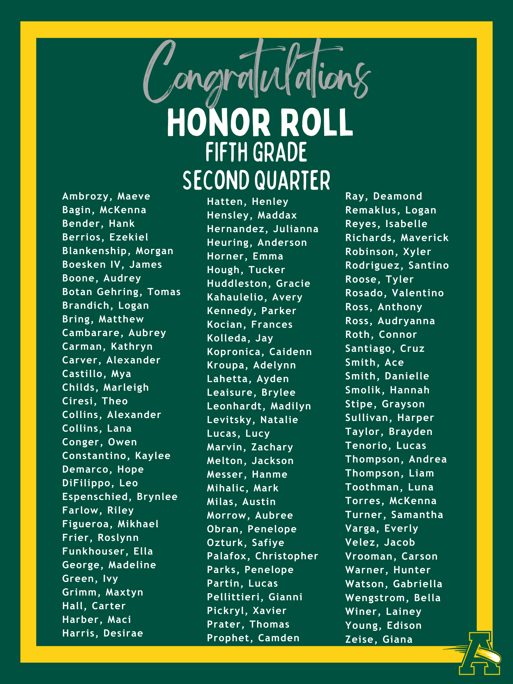 Thank you for your continued support as we navigate winter weather conditions. It was wonderful to have students back in the building yesterday, and we look forward to settling back into our routine in the weeks ahead! Congratulations to the students recognized below for Second Quarter Academic Achievement! Your hard work and leadership help make Nord a wonderful place to learn and grow.
