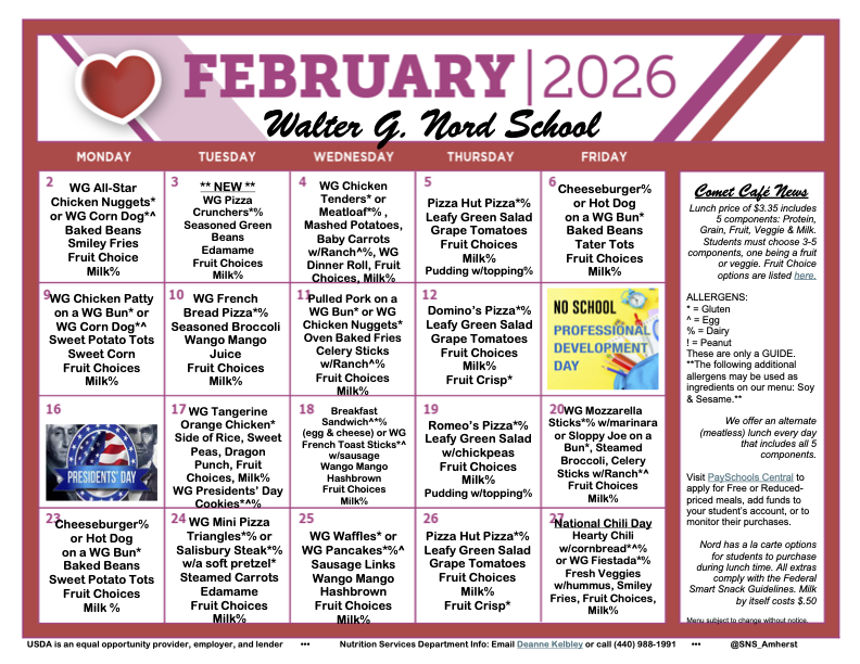 Our Walter G. Nord School PTO is proud to support our students, staff, and families of Nord through fun events, volunteer opportunities, and community connections. We would love to have you join us at our next meeting on Monday, February 9th at 9:30am. If you would like to join virtually, please complete this form. If you have any questions about our Nord PTO, please feel free to contact us at nordpto1@gmail.com.