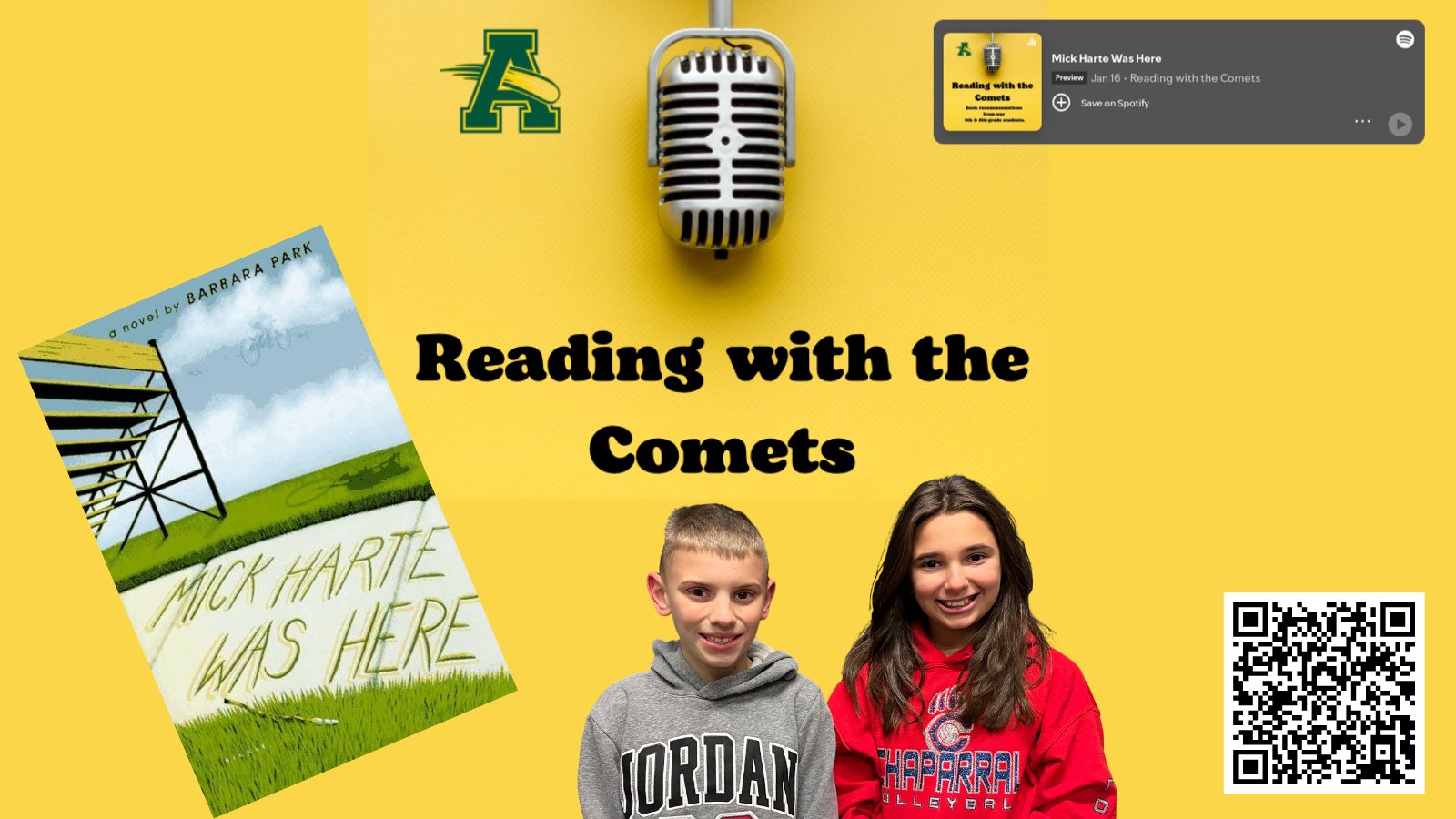 Our Nord students have a book they think you should read! Check out their podcast Reading with the Comets with their Book recommendation of Mick Harte Was Here by Barbara Park. Shout out to Danny, Slone, and Mrs. Schwartz! |