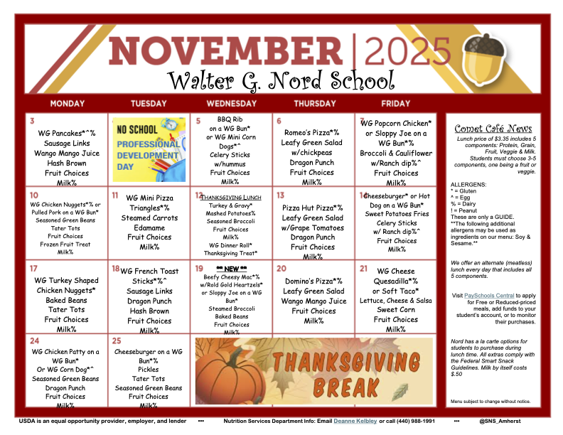 As we enter this season of Thanksgiving, we have so much to be grateful for at Walter G. Nord School. Thank you to our incredible students, who continue to grow, learn, and shine each day. Thank you to our dedicated Nord staff for always putting students first and creating such a welcoming and supportive environment. And thank you to our families for your ongoing partnership—your support truly makes a difference.