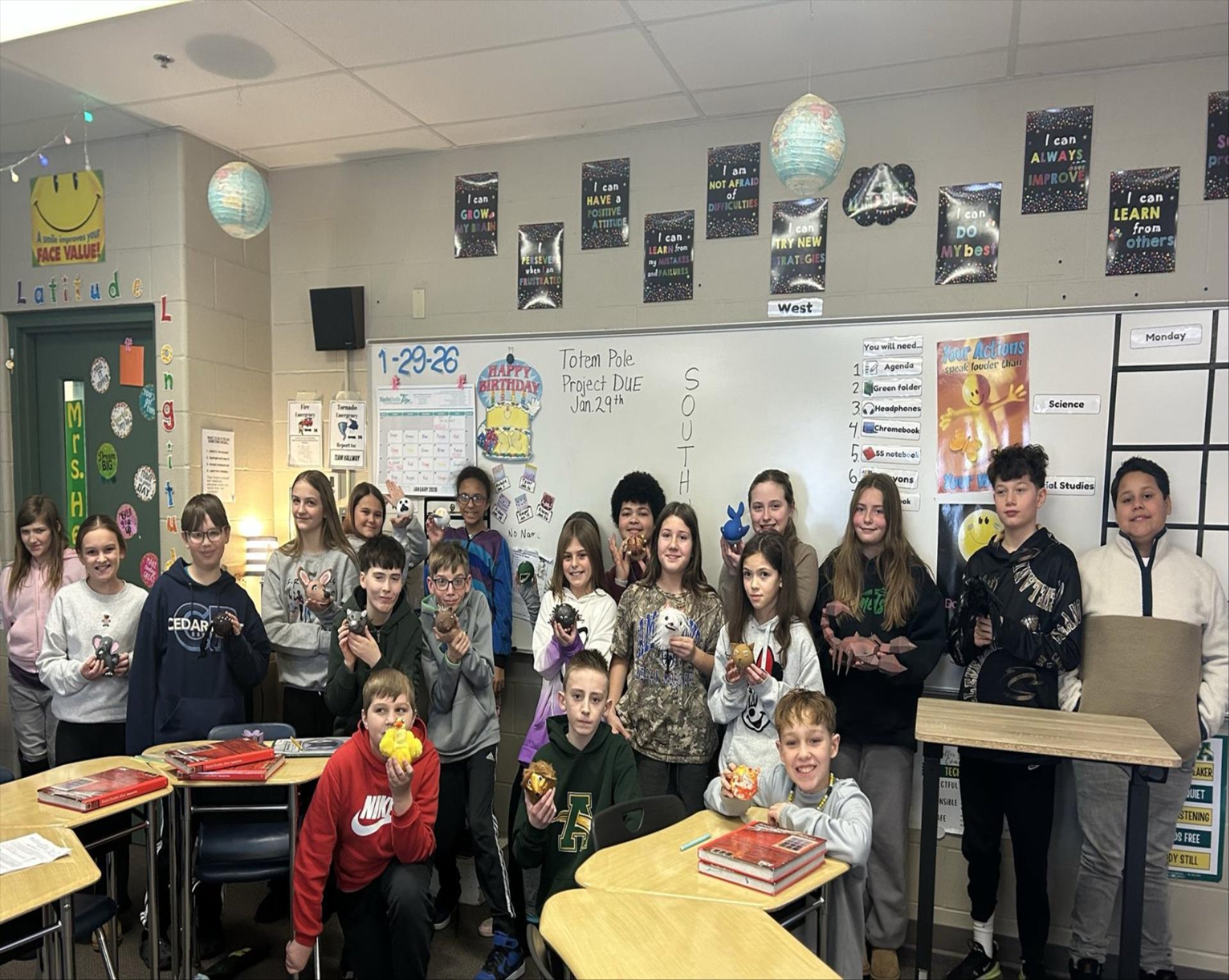 Our fifth grade students learned how Native American totem poles were created in the Northwest Coastal region that consisted of animals and spirits. Student chose character traits that revealed their spirit animal, transformed their styrofoam ball into the animal, and presented their projects in class! Well done, Comets! |